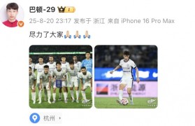 8月20日讯 提前进行的中超第23轮比赛,津门虎客场0-2不敌浙江队。赛后,津门虎球员巴顿更新了社媒...