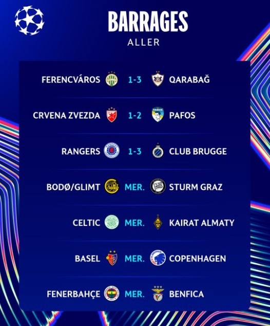 明日凌晨将进行附加赛首回合最后四场较量,土超豪门费内巴切与葡超霸主本菲卡的对决尤为引人关注。