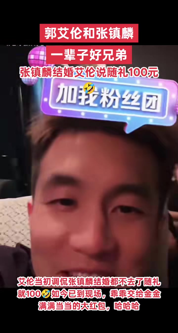 乖乖去现场随大红包😂郭艾伦曾放话:不去张镇麟婚礼 随礼100元